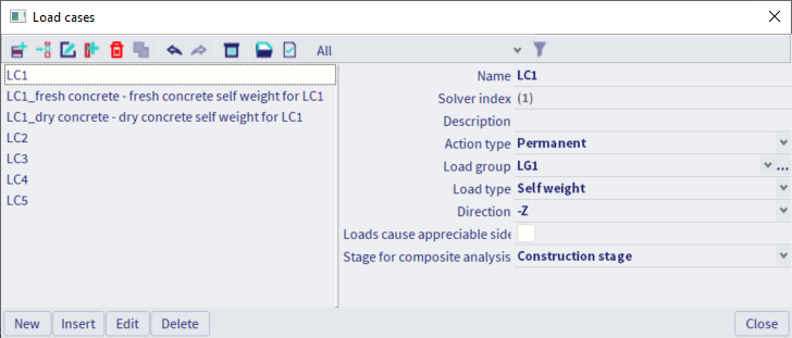 By default, the composite concrete self-weights are named using the same name as the non-concrete self-weight followed by “_fresh concrete” or “_dry concrete” for the fresh and dry concrete weights, respectively.