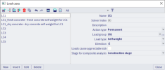 The load combinations can be given any name, but all load cases in the construction combinations must be from the construction stage and at least one final stage load case must exist in the final combinations. By correctly setting up load combinations the program can automatically determine for which stage the load combination is intended and can use the combination correctly for designing the member.