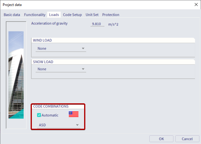 In the composite setup, the option for Generate composite combinationscan be set to ASD or LRFD to generate combinations according to the respective design method or be set to NO to not generate combinations automatically.