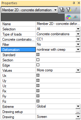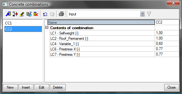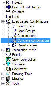 Concrete combinations are special combinations which are used only for the calculation of code dependent deflections (CDD). We have to prepare combinations with the same prescription as EN SLS quasi permanent. There is no special tool for preparation of the code dependent concrete combination in the program. All combinations have to be prepared manually.