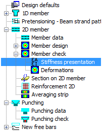 The service for stiffness presentation appears only after CDD calculation. This service is in Concrete Advanced tree (2D Member > Member check > Stiffness presentation).