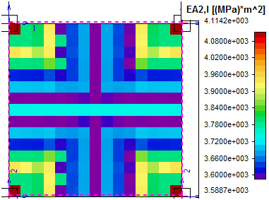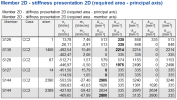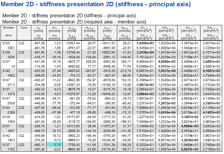- Stiffnesses – short-term (s) and long-term (l) axial (EA) and bending (EI) stiffnesses in both directions (1, 2)
