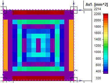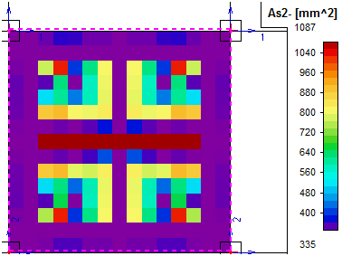 The required areas are the following. Graphical presentation is done for better overview again for the slab S138. The values correspond with the user defined reinforcement (free bars representing prestressing and designed user defined 2D reinforcement).