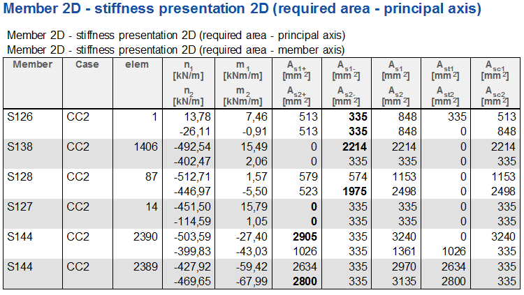 - Required areas – areas of the reinforcement which are used for the CDD calculation (user or required areas)