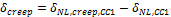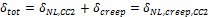 . Elastic deformation is nonlinear deformation for combination CC2. Creep deformation can be evaluated as the difference between Nonlinear+creep