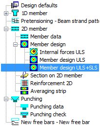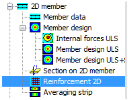 Design of necessary area of nonprestressed reinforcement is done in Concrete Advanced > 2D member > Member design > Member design ULS+SLS. The theory of the design is explained in details in [5].
