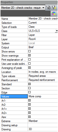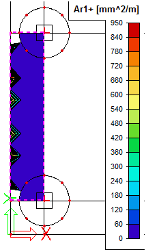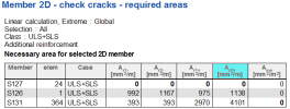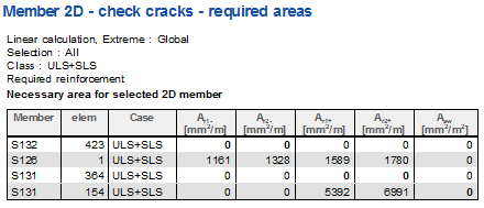 The required additional areas for class ULS+SLS for each surface and direction are the following. We can split design reinforcement into five groups: