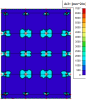 Maximal percentage of the reinforcement – another limit during the design seems to be the maximal percentage of reinforcement. The default value is 4% (9.2.1.1(3) from "EN 1992-1-1 Eurocode 2, Design of Concrete Structures – Part 1: General rules and rules for buildings, European Committee for Standardization, December 2004."). This limit is exceeded for this case (see non-designable places above columns for the case with the real tendon). If we increase this percentage to 5% the reinforcement can be designed with respect to this condition.