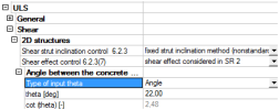 - Fixed strut inclination - value of cotangent is set to 2.48 (max = 2.5)