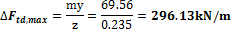 This value is much higher (3x) than allowed. From the investigation above we can assume that we can neglect the shear effect because we get very high value of additional longitudinal force due to shear.