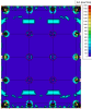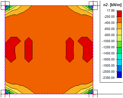- Shear effect - the regions above columns are very sensitive to taking or not taking into account the shear effect on required areas of longitudinal reinforcement. If we can neglect shear effect we get much lower values of the required areas. The explanation when we can neglect shear effect are the following: