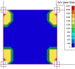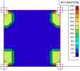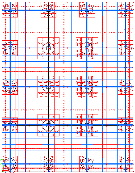 Additional nonprestressed reinforcement was designed for each surface in ULS+SLS in the chapter above. Now these required areas should be defined as the user real reinforcement. The reinforcement above columns should be designed in the rectangular areas at least L/4 in each direction above the columns. We increase the value to L/3.5 for the internal columns. It means rectangular mesh reinforcement.