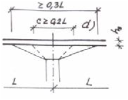 Due to reason described in the previous chapters it seems to be efficient to introduce column heads in the structure. The column heads as in the following figure have been modelled. Based on the span L = 9.0 m the outermost distance is 2.7 m and the inner effective distance is 1.8 m (see following figure). Depth of the head is 0.625+0.290=0.915 m.