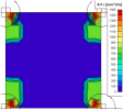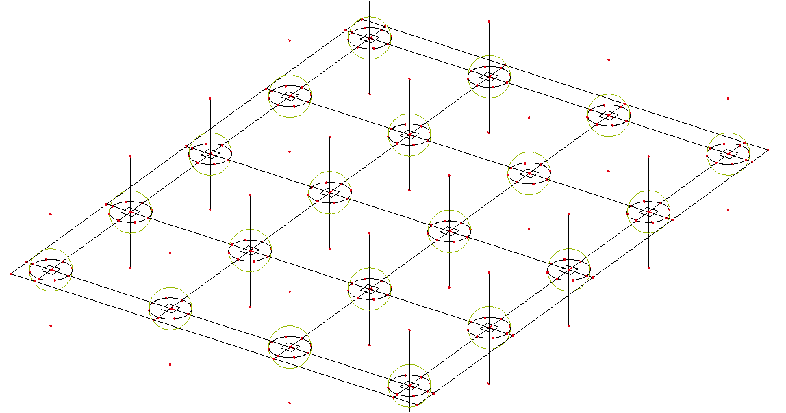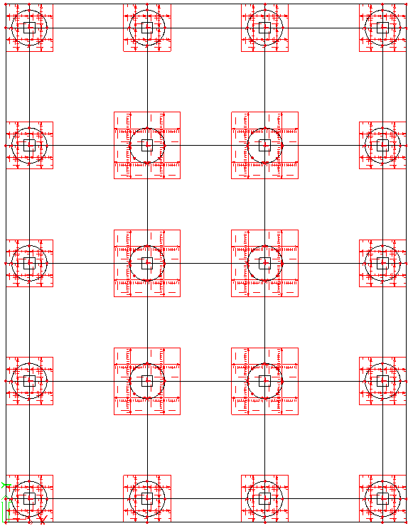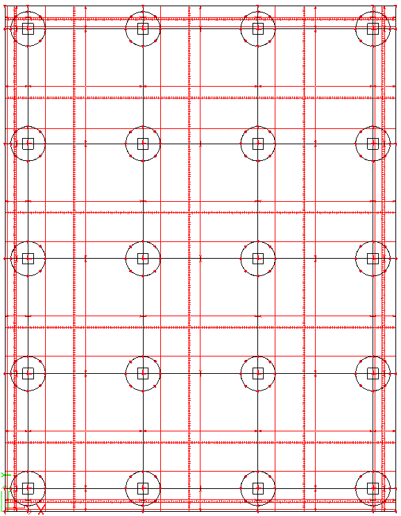 However if we neglect shear effect we still get some non-designable places above columns (empty areas above columns for no shear effect and 4% reinforcement limit). The solution is to introduce columns with head (see chapter "7.4 Definition of column head".)