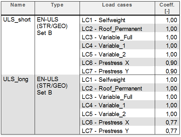 When the prestressing is modelled using equivalent load then short term and also long term losses should be estimated. It means reductions for short term (10%) and long term losses (estimation 15%) are applied for this case. Loadcases where prestressing is defined using equivalent load are separated for each direction (Prestress X, Prestress Y).