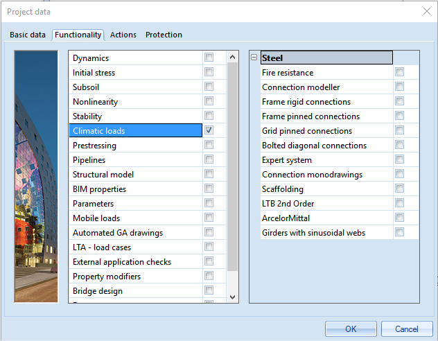 On the Functionality tab choose the options Climatic loads.