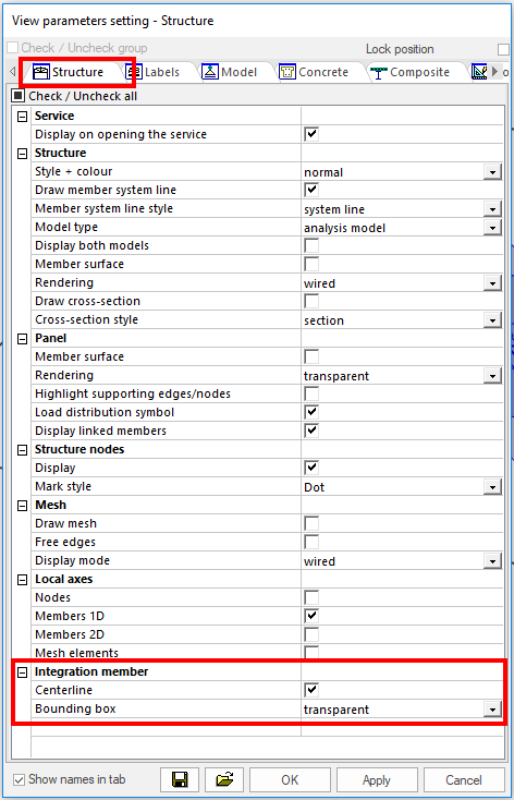 Results on Integration members are displayed as 1D member results. It is necessary to tick on checkbox “Integration strip/member” to see results on Integration member: