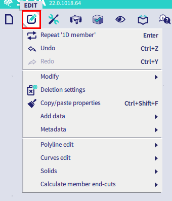 With the Edit menu the user can modify (move, copy, rotate,...) objects, properties, additional data and metadata. The user can edit polylines, curves and solids and can calculate end-cuts.