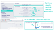 The settings of nonlinear stability within the solver settings are certain combination of settings for nonlinear analysis and linear stability, and are depicted in the figure below: