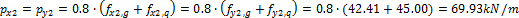 Using load-balancing method the rectangular recalculated line loads (80%(g+q)) are balanced by the uniform load representing the prestressing force.