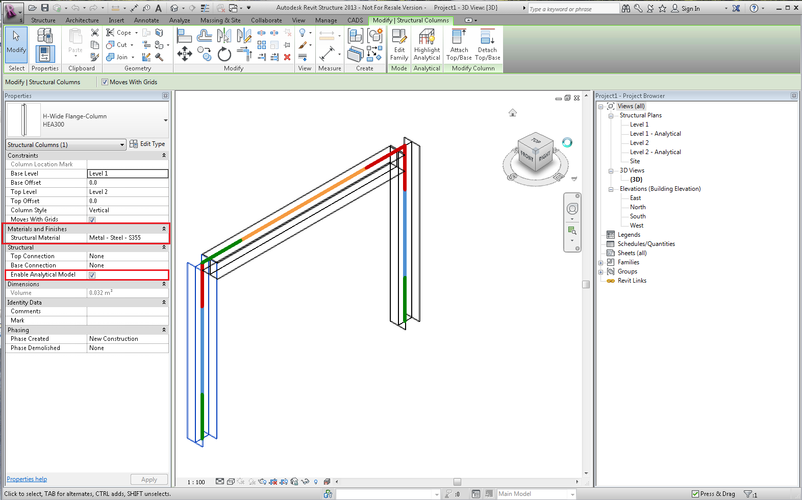 - Also make sure that each element which you want to transfer, has ‘Enable Analytical Model’ activated, and that there is a ‘Structural Material’ indicated for that element. Revit does not require a material for each element, but the Revit link does require that each element that you want to transfer has a material.