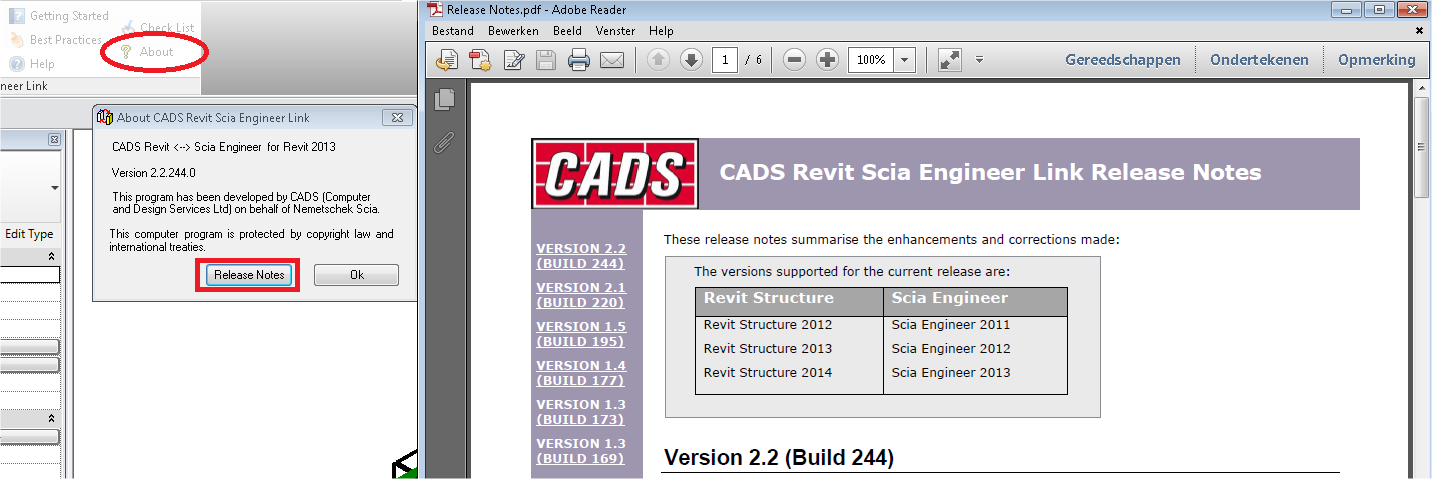 - If you are searching for extra documentation/help, then the options ‘Getting Started’, ‘Best Practices’, ‘Help’ and ‘Check list’ can be of great help to you. Also the option ‘About’ will give you the version of the Revit link, but also the release notes (improvements in the last patch of the Revit link in comparison with the previous one).