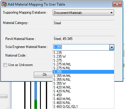 - Click ‘Yes’ and choose the correct ‘SCIA Engineer Material Name’ (for example S355).