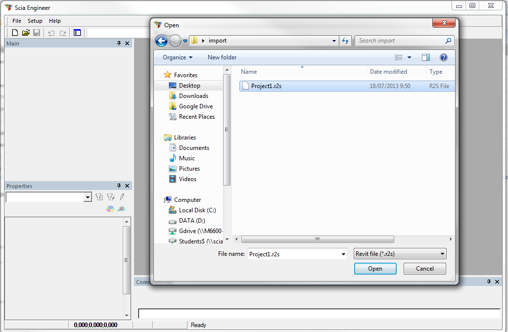 - Now open your Windows explorer, and go to the .R2S file which has been generated by the Revit link. Copy this file to the pc where you wish to import the file in to SCIA Engineer.
