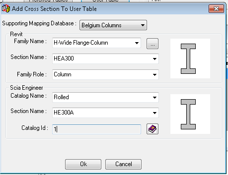 - Then for the options under ‘SCIA Engineer’, Catalog Name = Rolled, and search the section HE300A. You should have the following options: