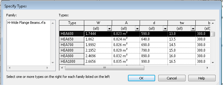 - Now we will add the same cross section, but then for the frames, and also the HEA600 from SCIA Engineer. If you do not know the name in SCIA Engineer, then run the Revit link again, and look at the message indicated in red. For the HEA600, it will be necessary to use the ‘Netherlands Beams’ (for example).