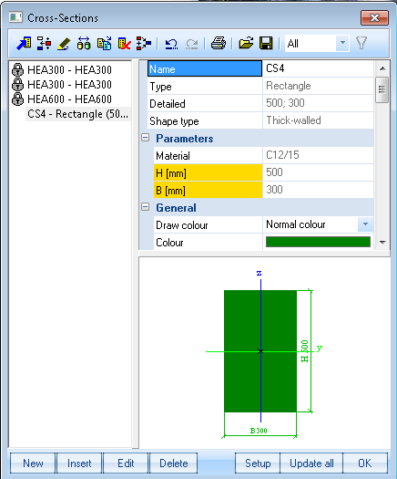 - In SCIA Engineer, we are going to add the default rectangular concrete cross-section and change the property of one column to this cross-section.