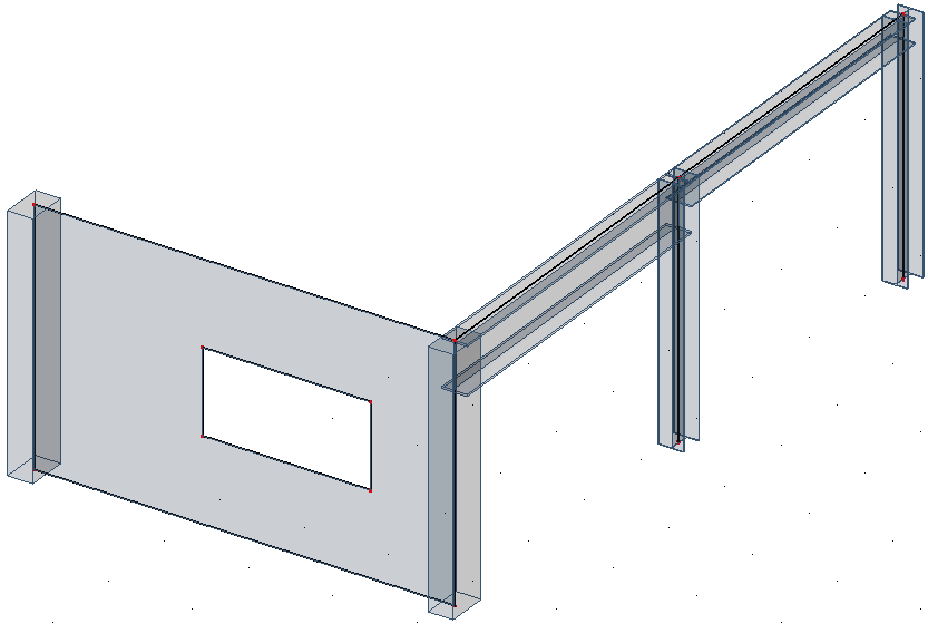 - In the image below, the concrete column has been copied, and a (steel) wall has been placed between the two concrete columns. An opening has also been added to the wall (it is important that vertical 2D elements have the type ‘wall’ and horizontal the type ‘plate’).