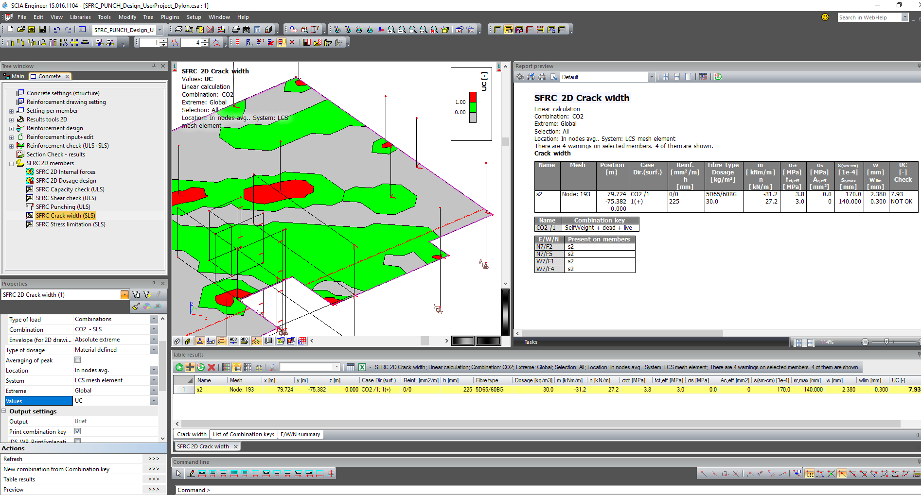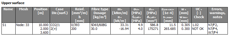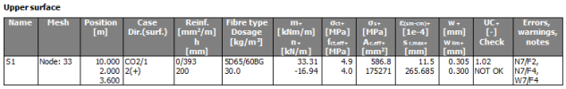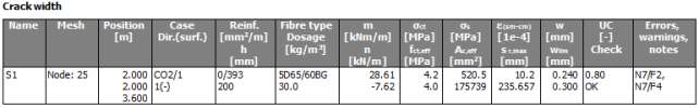 Green - UC is between 0,001 and UClim → Cracks appear, but the values are lower than limit crack width, check is OK