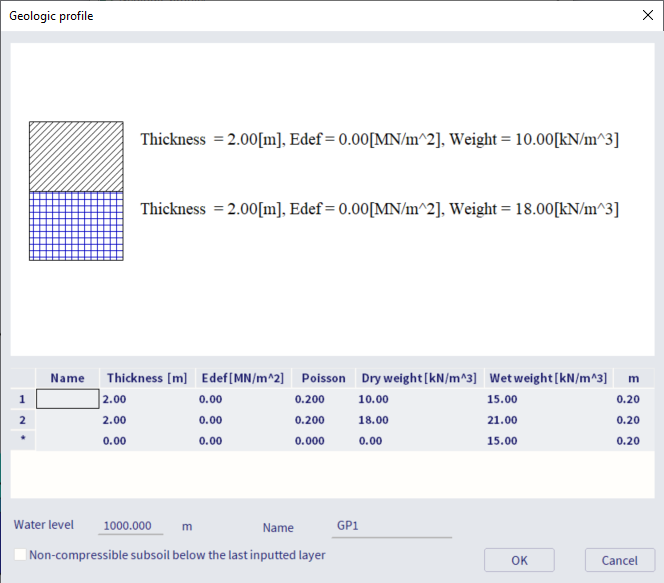 A new geologic profile can be input in the Geologic profile manager. Function New of the manager opens the Geologic profile dialogue.
