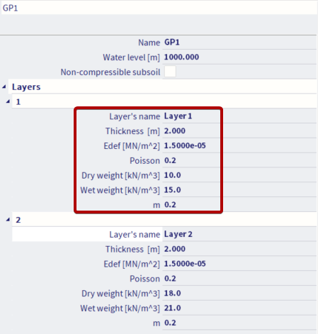 The subsoil contains parameters which can be defined by the user or calculated by soil-in.