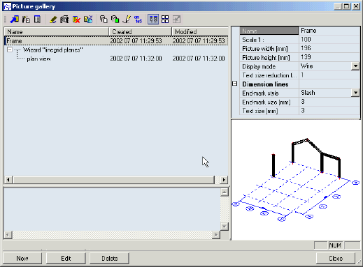 The Picture gallery manager is an advanced type of a standard SCIA Engineer’s database manager. It consists mostly of standard "database manager parts".