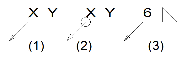 The location of the weld is defined by the above welding symbol. The X stands for the weld size, and Y stands for the weld symbol. The circle symbol in (2) is the weld-all-around symbol.