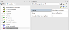The linear calculation protocol contains, among other results, a summary table of modal superposition for each seismic load case.