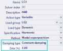 For the constant damping, the dimensionless damping ratio (or also known as the damping factor) needs to be defined (input in %). It is denoted as "zeta", Greek letter ζ.