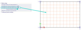 In the first case, the element mesh is set with an element size of 1 meter (in the following figure, the finite element mesh is shown by a solid orange line). The value of the modified load on the 2D element can be checked in SCIA Engineer using Surface Loads (2D results). It can be seen that on each element the load has either a positive or negative direction.