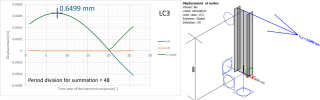 The response of the analysed structure during the harmonic loading is variable in time, altering periodically. In general, the results might be obtained from any time step of this period. The most critical results are the extremes (maxima in the absolute value). Hence, these extremes are provided as the results of the harmonic load case. The property "period division for summation" determines the step size of the periodical response from which these extremes are evaluated.
