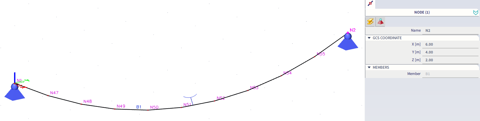 The alternation of these parameters automatically causes the geometry change of the catenary curve. The geometry is also automatically altered after the coordinate change of the begin or the end node of the cable.