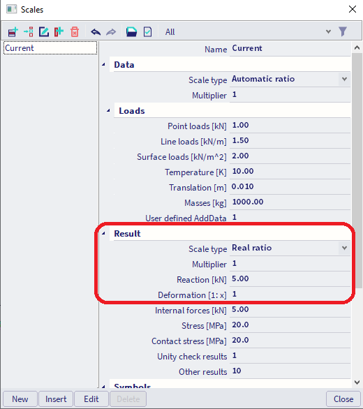 In order to see the real scale of the results (the default scale is exaggerated artificially), it is necessary to set the real ratio and the multiplier equal to 1 within the Scale setup: