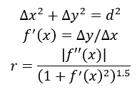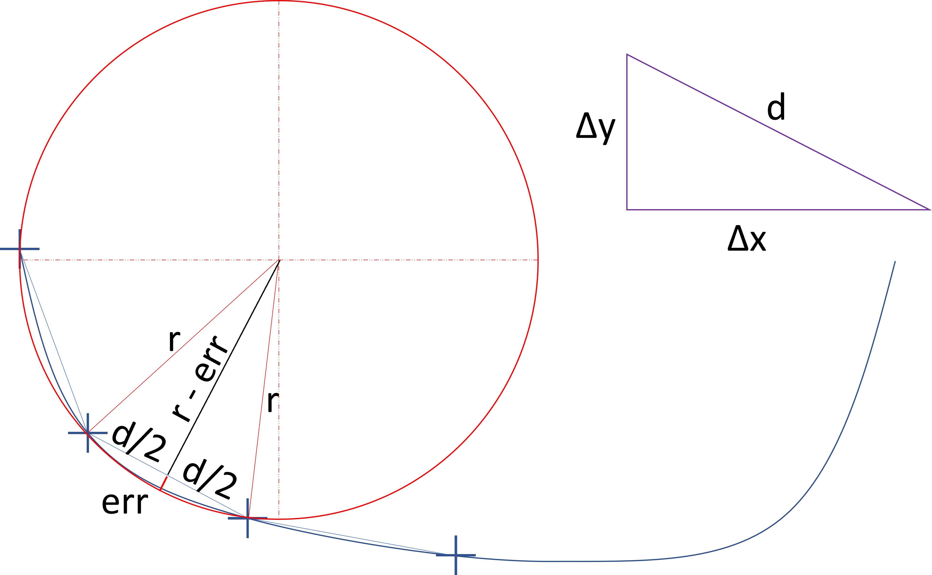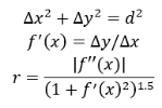 The user has a full control of the catenary curve approximation precision. A general curvature approach has been utilized. Using the curvature (parameter defining how much the curve bends at the given point) the radius of the circles (of the same curvature as the curve in the touching point) is calculated. Concept of the approximation error is graphically described in the figure below: