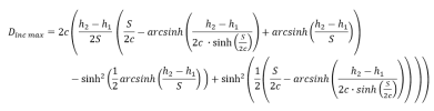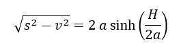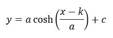 Parameters k and c represent the horizontal and vertical shifts of the curve, respectively. Computation of these parameters is thoroughly described on the web. In this web-page, the length of the catenary curve is given, in SCIA Engineer it is calculated. The relation between catenary length s, vertical span of two definition points v and their horizontal span H is: