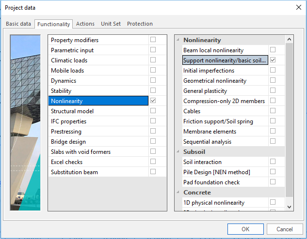 Support nonlinearity is nonlinear functionality which can be apply on any type of supports. These features can simulate special nonlinear behaviour of supports. For taken into account it is necessary to perform nonlinear analysis.