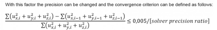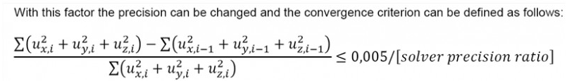 | Solver robustness ratio | This parameter affects the damping (speed of change) of the stiffness and internal forces of non-linear hinges, supports, members. It is not possible to exactly describe it, because it is always a little different in different cases and types. It influences the convergence of nonlinear calculation with local nonlinearities on 1D members, hinges and with nonlinear surface support independently on selected method of calculation. O a high value of this parameter ensures a more stable but slower convergence of the calculation. It can help in case of sensitive nonlinear analysis where convergence is problematic. |