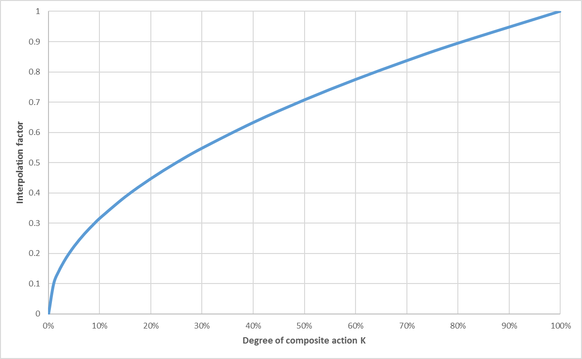K = degree of composite action; 0 = no composite action; 1 = full composite action