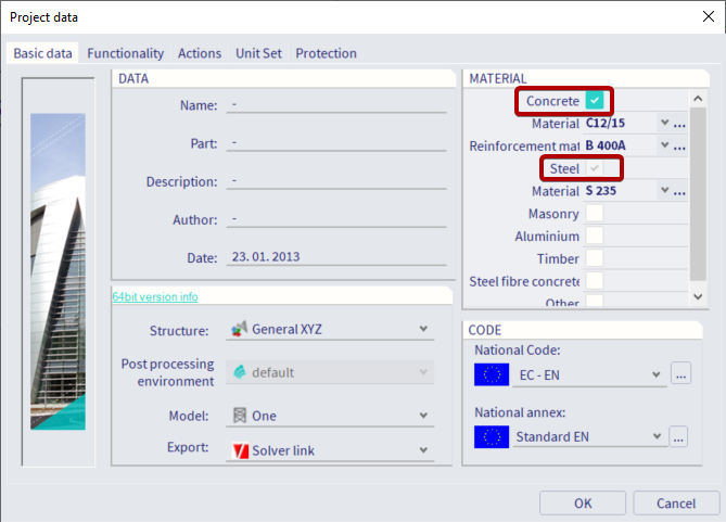 In the project settings, simply enabling both concrete and steel material libraries will enable the CAM.