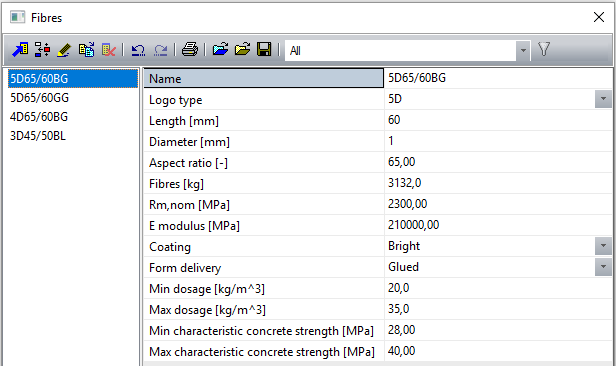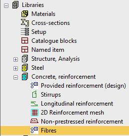 There is a new library of Fibres if the check box in Project data > Steel fibre concrete is set ON. This new library is in Libraries > Concrete, reinforcement > Fibres.